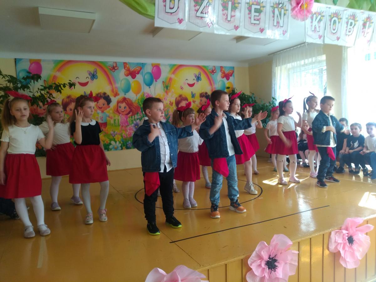 Z tej okazji dzieci z grup: „Misie”, „Żuczki”, „Jeżyki” oraz Koło Taneczne przygotowały program artystyczny i zapewniły widzom sporą dawkę dobrego humoru. Dzieci z zaangażowaniem recytowały wiersze oraz odgrywały scenki, które w humorystyczny sposób prezentowały jak uczcić kobiety i przygotować odpowiednie prezenty. Cały dzień trwała radosna atmosfera.
