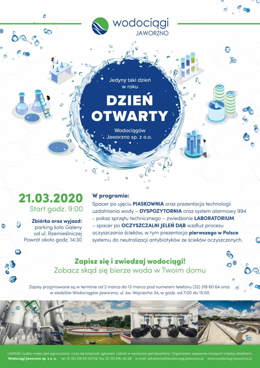 Aby wziąć udział w zwiedzaniu Wodociągów wymagane jest wcześniejsze zapisanie się na wydarzenie. Zapisy przyjmowane są w terminie od 2 do 13 marca pod numerem telefonu (32) 318 60 64 oraz w siedzibie Wodociągów Jaworzno, ul. św. Wojciecha 34, w godz. od 7:00 do 15:00.