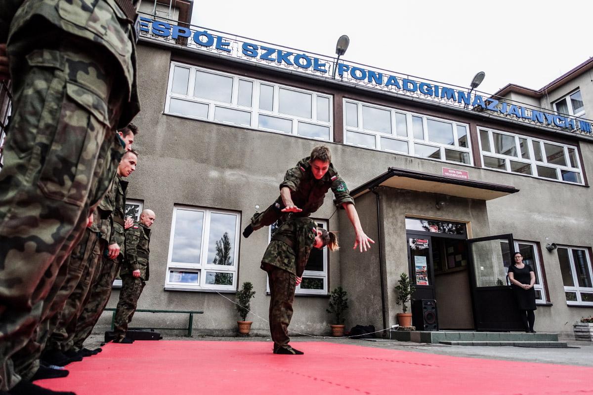 W ramach dnia otwartego przygotowano szereg atrakcji. Tuż przed wejściem można było obejrzeć pokaz samoobrony w wykonaniu klas mundurowych. Zajęcia dla uczniów prowadzi mistrz Łukasz Proksa, który przygotowuje ich do pracy w wojsku czy choćby policji. Po obejrzeniu pokazu można było być pod wrażeniem umiejętności uczniów.