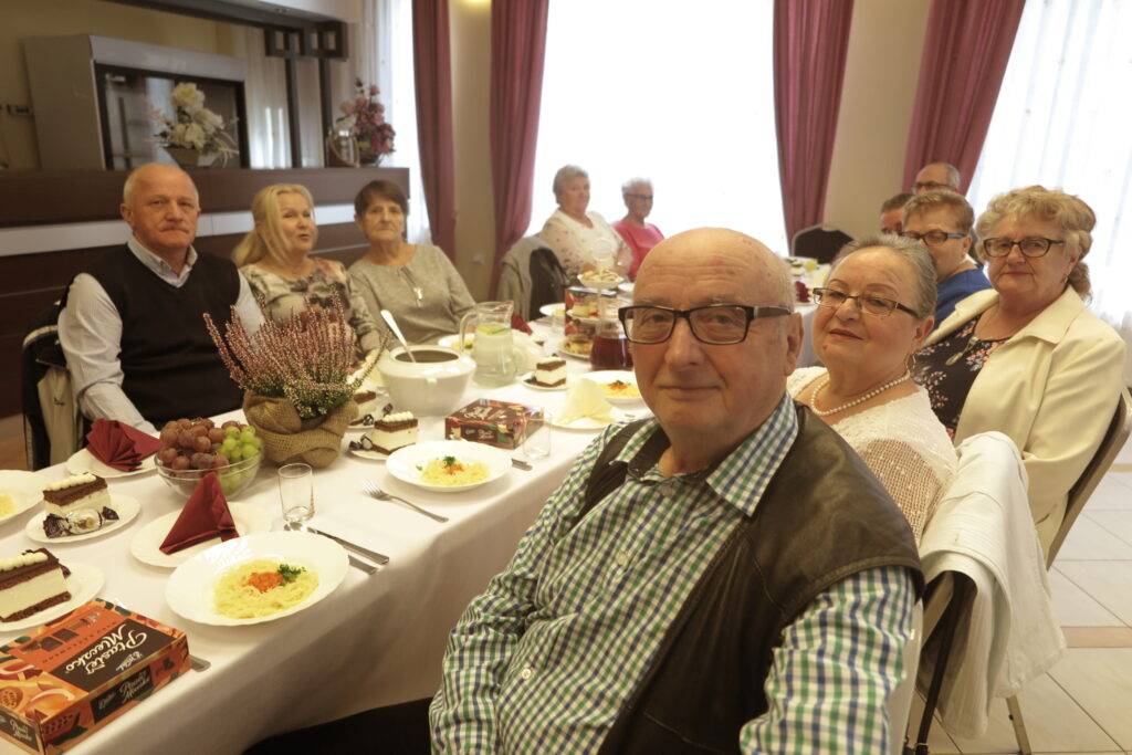 od lewej: Halina Szubert (członek zarządu PZERiI okręg Jaworzno), Aleksandra Bąk (przewodnicząca PZERiI okręg Jaworzno), Bożena i Henryk Inglot, Bronisława Sołtysik (skarbnik PZERiI okręg Jaworzno), Urszula Worońska (członek zarządu PZERiI okręg Jaworzno)[/caption]Uroczystość umilał muzyką pan Darek, który zaprezentował się, jak to określił, w „muzyce do tańca i do różańca”. Były więc szlagiery z lat 60-tych i 80-tych oraz disco polo. Ten rok był dla członków związku udany, był lepszy niż poprzedni, zdrówko dopisało, mniej obostrzeń pozwoliło zorganizować więcej spotkań i udanych wczasów, m.in. do Kudowy Zdroju, Jarosławca, Sianożęt i Mrzeżyna.