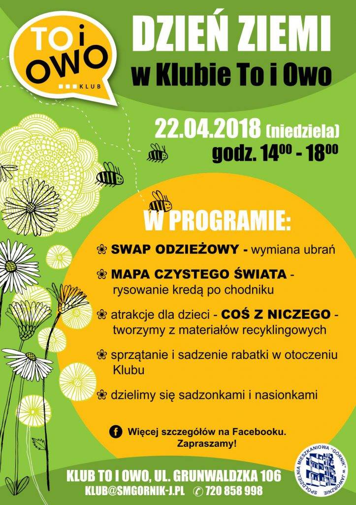 Zapraszamy na rodzinne odwiedziny w Klubie To i Owo. Niedzielny spacer warto skierować na Grunwaldzką 106. Bo dobrze jest świętować Dzień Ziemi wspólnie!