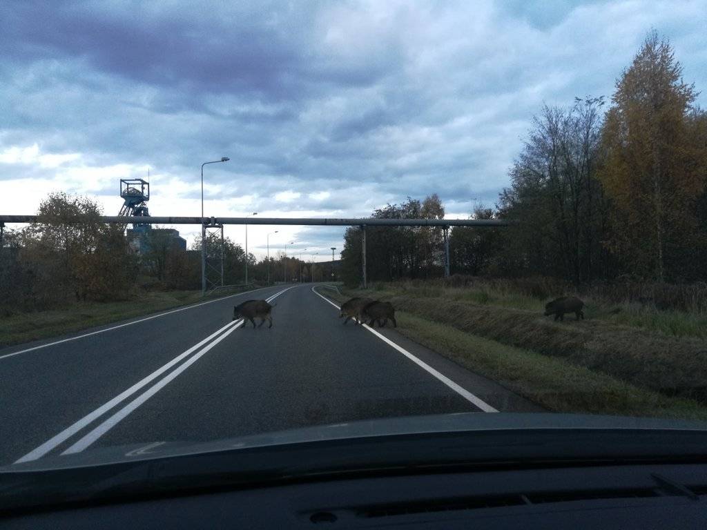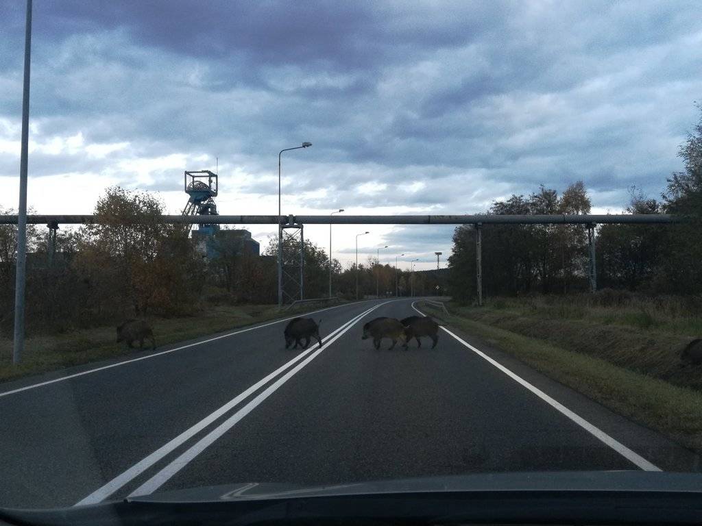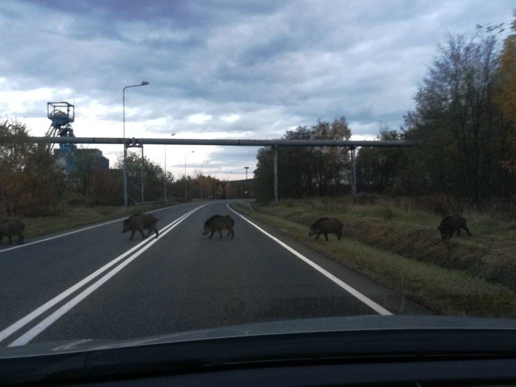 Czytelniczka przesłała nam zdjęcia stada dzików, na które natknęła się podczas jazdy jedną z jaworznickich ulic.
