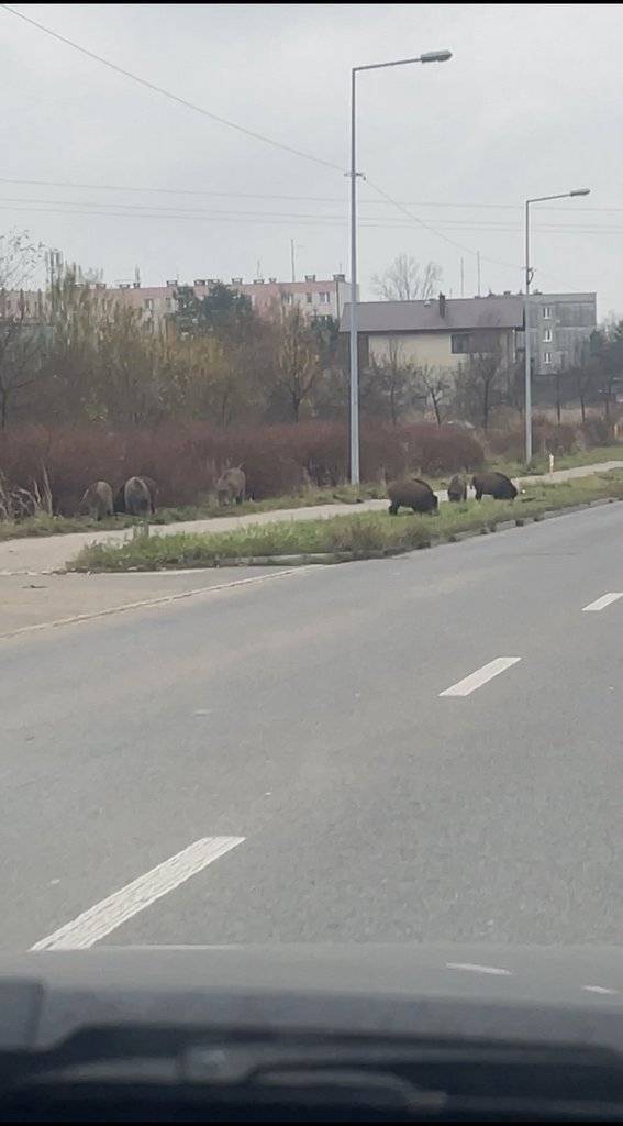 Czytelnik przesłał nam zdjęcia stada dzików, na które natknął się podczas jazdy ul. Kołłątaja w Jaworznie.