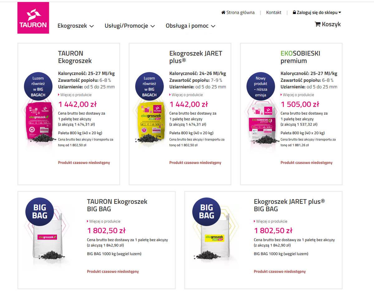 Cena ekogroszku w sklepie internetowym spółki Tauron poszła w górę i od dzisiaj za 1 tonę tego kruszcu zapłacimy więcej.