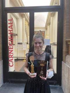 Praca i szczęście - pozwoliły mi po raz drugi zagrać w jednej z najlepszych i najbardziej cenionych sal na świecie, w Weill Recital Hall at Carnegie Hall. To niezwykłe miejsce dla każdego muzyka, postawienie stopy na deskach sceny tej sali jest zaszczytem. Weill Recital Hall at Carnegie Hall jest salą liczącą dokładnie 268 miejsc, grali w niej najsławniejsi i najlepsi muzycy na świecie m.in. mój idol i jeden z najbardziej poważanych skrzypków na świecie - Maxim Vengerov. Oprócz samej niezwykłości, doskonałej akustyki, sławy i popularności sali możemy bardzo zdziwić się, że jest to tak na prawdę miejsce dla LUDZI, bo muzyka i kultura jest dla ludzi. Przychodząc na koncert wcale nie ma określonego dress code - słuchacze powinni ubrać się wygodnie, bez względu, czy jest to ubranie eleganckie, czy bardziej codzienne, a wręcz swobodne ubranie - „to tylko rzeczy”. Ja, w mojej sukni, o którą zadbała moja Babcia, czułam się jak księżniczka, bo to nie tylko mój czas, nerwy, szczęście i praca pozwoliły na to, że znalazłam się właśnie w Carnegie Hall - to również życzliwość i pomoc otaczających mnie ludzi. Tutaj pozwolę sobie wymienić i podziękować: mojej Babci, która odkąd pamiętam dbała zawsze o moje stroje koncertowe, o to, bym dobrze prezentowała się na scenie, Mamie - która zawsze wspiera i pomaga, Dziadziusiowi - który jest zawsze w ciężkich chwilach, gdy nie mam już cierpliwości i siły do jakichkolwiek nauk, Siostrze Oldze - która każdy upadek obróci w żart i podniesie na duchu, mojemu Profesorowi Adamowi Musialskiemu - za wsparcie, przygotowanie i każdą sekundę lekcji oraz Pani Małgorzacie Basiuk - to właśnie jest osoba, która zaszczepiła we mnie miłość do skrzypiec, a przede wszystkim dziękuję Państwu za nieustające towarzyszenie mi w moim muzycznym życiu, za każde dobre i złe słowo, bo każde daje mi do myślenia i jest powodem do ciągłego doskonalenia. Tego wieczoru, gdy spełniłam kolejny raz moje marzenie czułam się jak gwiazda, ale te słowa nie są w stanie opisać uczuć jakie mi towarzyszyły podczas koncertu - to po prostu trzeba przeżyć. Wiem, że nigdy nie zapomnę żadnego z wydobytych dźwięków mojego ukochanego instrumentu F. Borowieckiego w Weill Recital Hall.