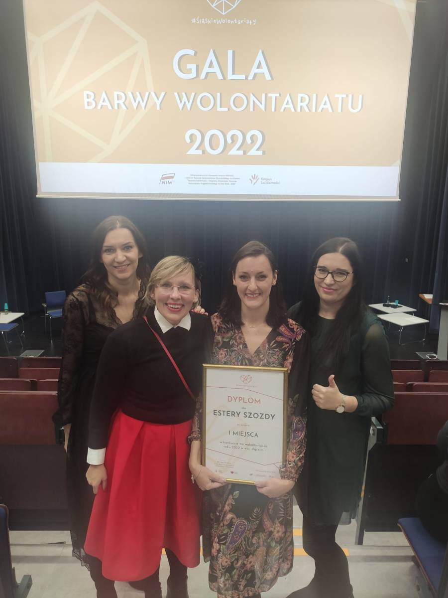 Pani Estera jest wolontariuszką Fundacji Kobieca Przystań. Mówi o niej Anna Chechelska, również działająca w tej Fundacji: Z Esterą Szodą znamy się kilka lat. Miałyśmy okazję poznać się przy moim pomyśle zakładania Fundacji ZosiaNieSamosia. Już wtedy urzekła mnie swoją wrażliwością, ogromnym zaangażowaniem i złotym sercem, chętnym do pomocy każdemu. I dlatego ogromnie się cieszę z nagrody, którą otrzymała ponieważ uważam, że nikt nie zasłużył sobie tak jak Ona. Estera to Prawdziwy Anioł w ludzkiej postaci!