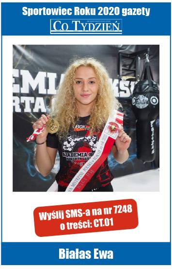 Jeśli chcesz, żeby Ewa Białas została Najpopularniejszym Sportowcem Roku 2020 w Jaworznie, wyślij SMS na nr 7248 o treści CT.01 lub wypełnij prawidłowo kupon, dołączany do gazety Co Tydzień i dostarcz go do redakcji. Głosujemy do 6 kwietnia.