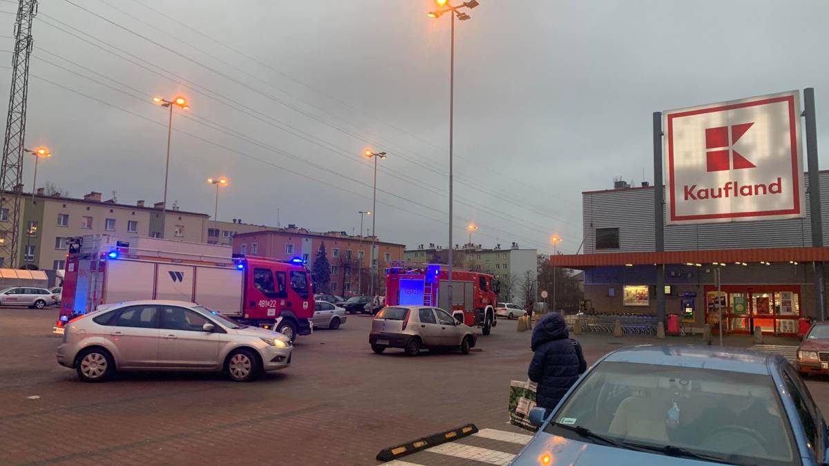Interwencja straży pożarnej w jaworznickim sklepie Kaufland. Klienci sklepu zostali ewakuowani ze sklepu.