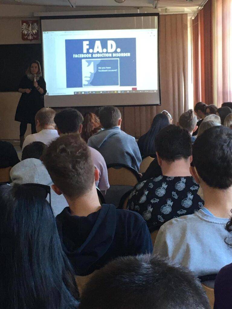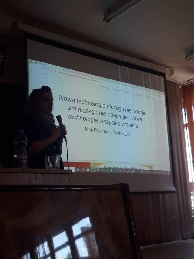 Postanowiliśmy więc w ZSP nr 3 im. Jana Pawła II wejść razem z nimi w świat medialny i okiełznać go, choć trochę. Stąd pomysł na Festiwal Kultury Medialnej. Rozpoczęliśmy go wykładem, prowadzonym przez dr Barbarę Wolek-Kocur, doktor nauk humanistycznych, medioznawcę, kulturoznawcę, socjologa, wykładowcę Wyższej Szkoły Zarządzania Ochroną Pracy w Katowicach. Pani Doktor to specjalistka z zakresu komunikacji, reklamy i public relations. Wykład zatytułowany „OK Google! Jak szukać wartościowych informacji w Internecie i nie nabrać się na fake newsy?” zwracał uwagę na jakość informacji w sieci i podpowiadał, jak radzić sobie w szumie komunikacyjnym. Po pierwszej części spotkania, nadszedł czas na drugi wykład - „Czy wiesz, co robią z Tobą social media?”