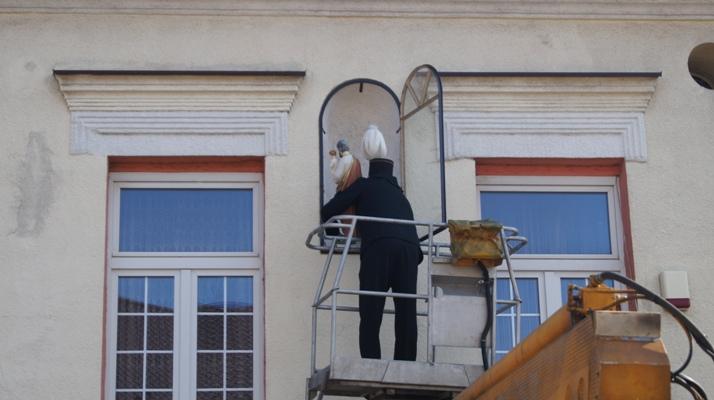 Figura św. Józefa wstawiona do kapliczki przy budynku „Przyjaźni”