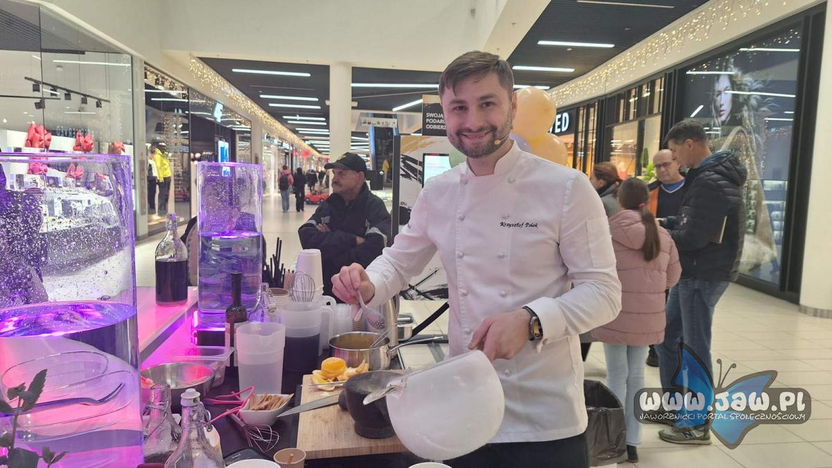 Kucharz Krzysztof Polok z Zabrza zaprosił do kuchni molekularnej, czyli jak objaśniał to inne techniki kulinarne niż klasyczne pieczenie, duszenie, smażenie. W takiej kuchni molekularnej gotuje się w niskich temperaturach, smażymy na ciepłym azocie, albo mrozi w suchym lodzie. Zafrapowanych obserwatorów tej techniki było mnóstwo. Pan Krzysztof proponował syrop z wanilią z Madagaskaru i piasek z oliwy z pestek dyni.