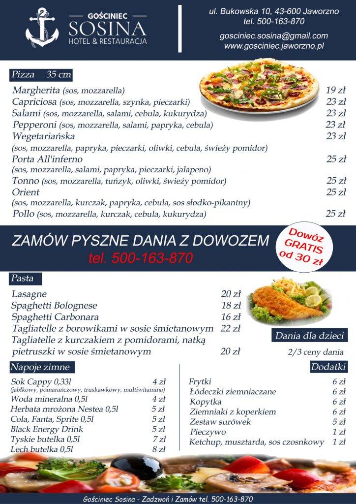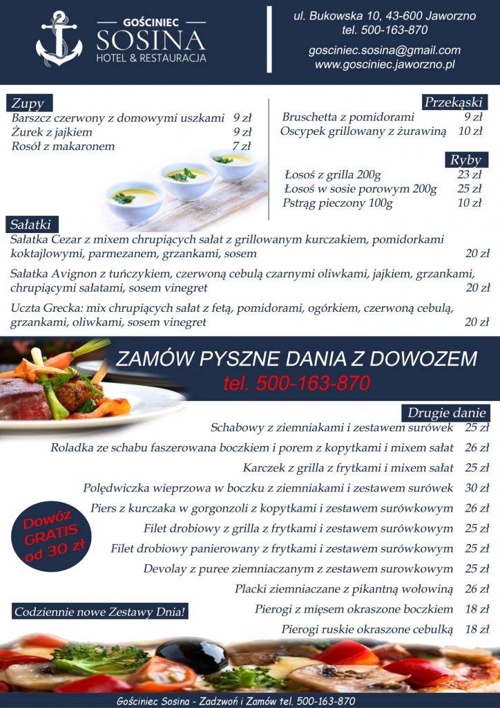 Menu na wynos oferuje Gościniec Sosina, hotel i restauracja.