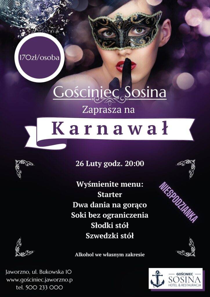 Gościniec Sosina zaprasza na zabawę karnawałową