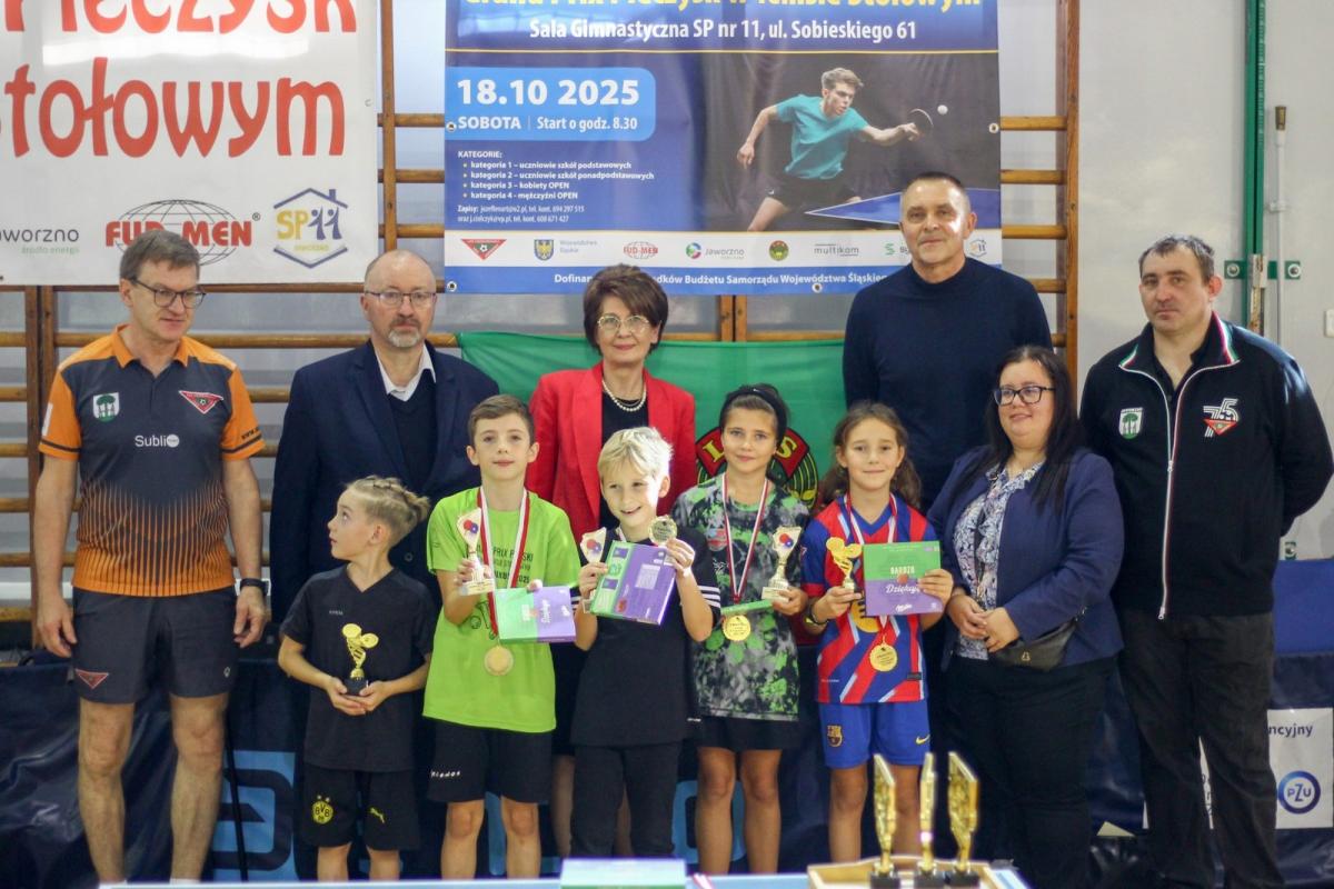 Organizatorzy składają gorące podziękowania wszystkim podmiotom współpracującym, osobom i instytucjom, za udzielone wsparcie, a byli to: Samorząd Województwa Śląskiego, Śląskie Zrzeszenia LZS, Gmina Jaworzno, Przewodniczący Rady Miejskiej w Jaworznie Michał Kirker, Przewodnicząca Komisji Kultury i Sportu Rady Miejskiej w Jaworznie Barbara Sikora, Państwo Janina i Marek Banasikowie, Szkoła Podstawowa nr 11 w Jaworznie, Multikom, FUD-MEN, Symfonia. Jednocześnie podziękowania indywidualne dla pani Dyrektor Natalii Kamińskiej i personelu SP nr 11, Józefa Lenartowicza, Włodzimierza Szczepanika, Ewy Bieniek, Anny Grubka, Radosława Madery, Dominika Kasprzyka i zawodników sekcji tenisa stołowego LKS "Ciężkowianka" Jaworzno oraz wszystkich uczestników dzięki której udało się imprezę sprawnie przeprowadzić. Zadanie wsparte ze środków budżetu Samorządu Województwa Śląskiego oraz Gminy Jaworzno.