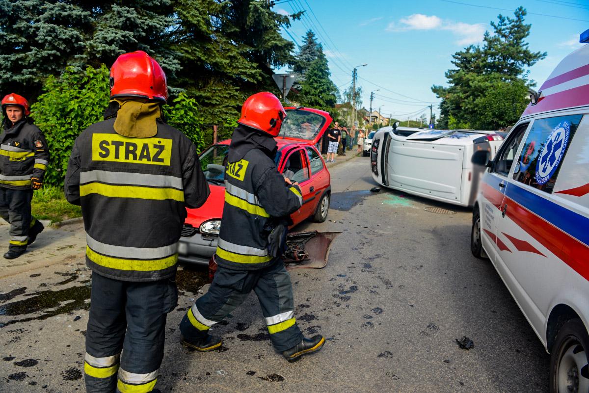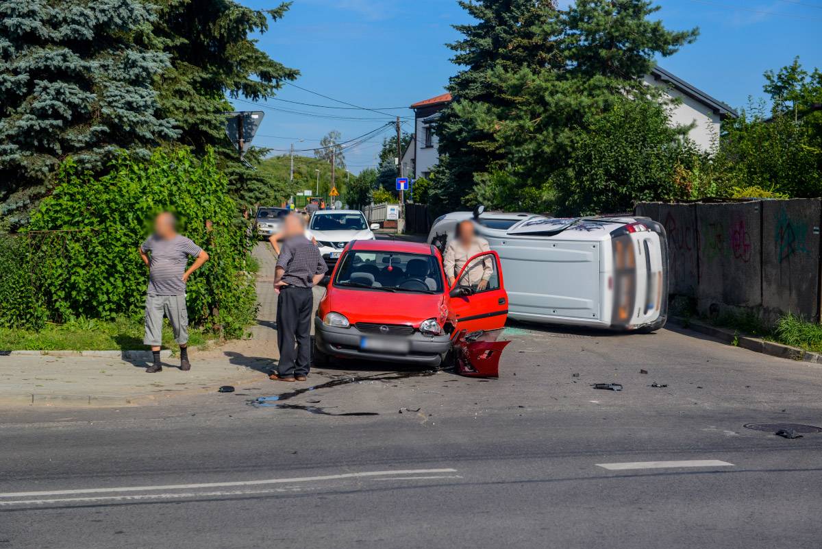 Do kolejnej bardzo groźnie wyglądającej kolizji drogowej doszło na skrzyżowaniu ul. św. Wojciecha, Drabika oraz Północnej. W kolizji wzięło udział kilka pojazdów, jeden z nich wywrócił się na bok.