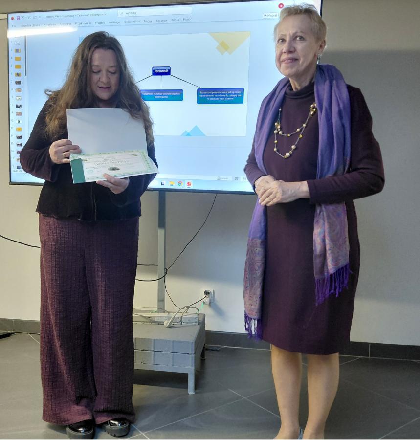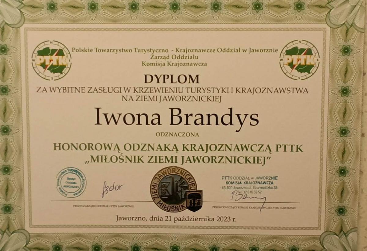 Spotkanie w muzeum z Historią na Ty - już trzydzieste trzecie - zaczęło się tym razem nietypowo. Krystyna Byrczek sekretarz PTTK w Jaworznie wręczyła dr Iwonie Brandys dyplom i honorową odznakę krajoznawczą: „Miłośnik Ziemi Jaworznickiej”. Pięknie. Jest za co: ziemia jaworznicka w etnograficznym obrazie pokazywanym przez wyróżnioną jest ciekawa i kolorowa.