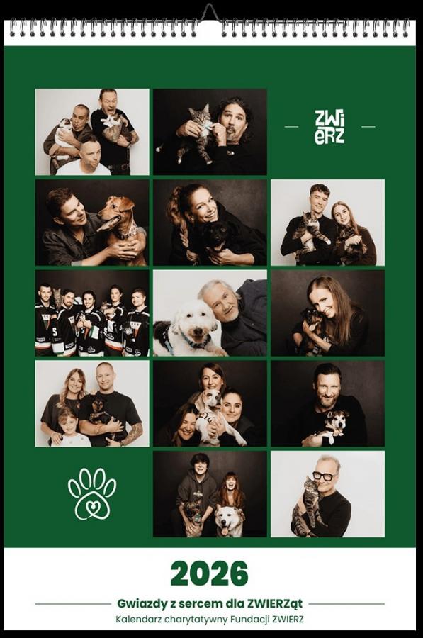 Fundacja ZWIERZ wraz z Magdaleną Hałas stworzyła kalendarz na rok 2026 o nazwie “Gwiazdy z sercem dla ZWIERZąt”, który ma promować adopcję oraz wesprzeć zwierzęta. Na kartach z kalendarza znalazły się bowiem fotografie polskich gwiazd – aktorów, sportowców, youtuberów, aktorów kabaretowych – oraz zwierząt czekających na adopcję.