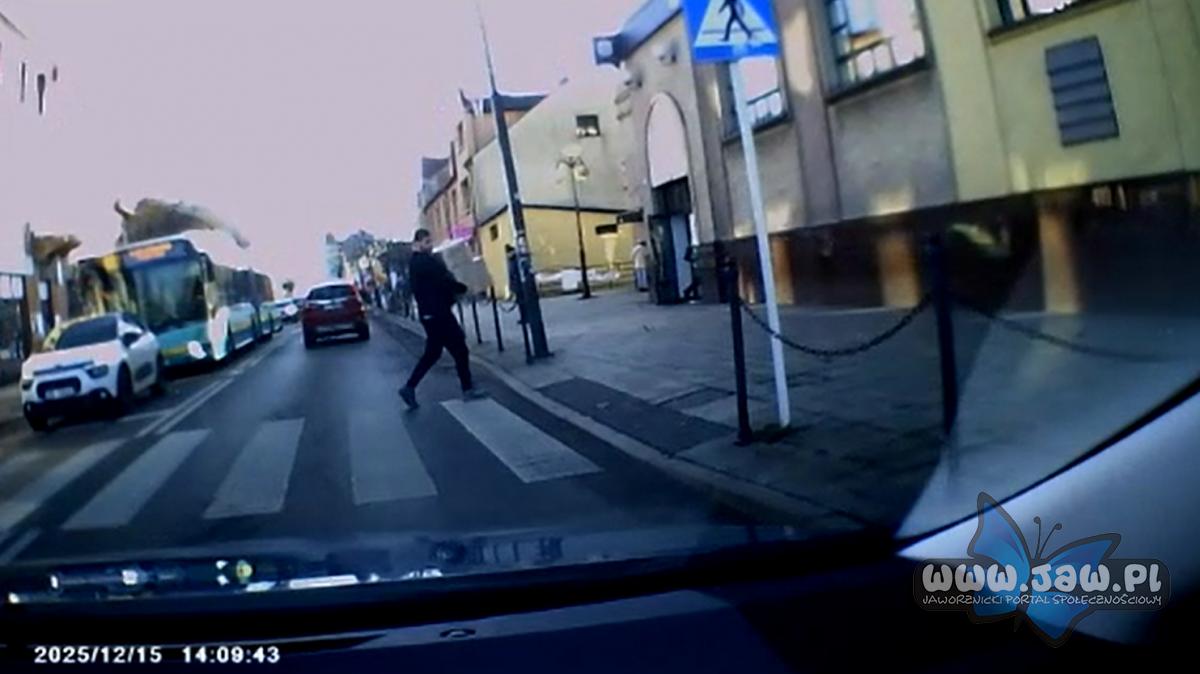 O krok od tragedii na ulicy Grunwaldzkiej w Jaworznie. Kierowca czerwonej Hondy niemal nie potrącił przechodzącego przez przejście dla pieszych mężczyzny. Pieszy był już na środku przejścia, kiedy kierowca przejechał tuż przed jego nogami.