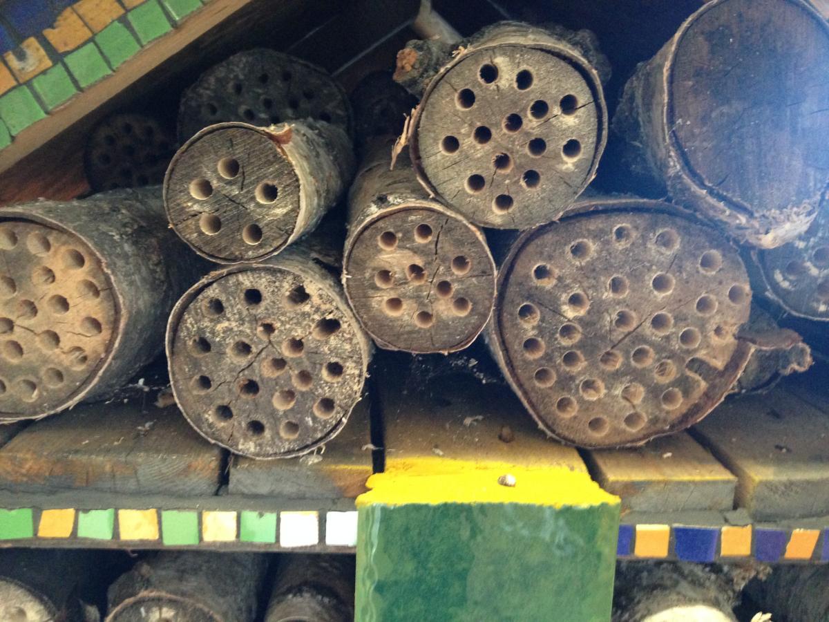 We wnętrzu domku dla zapylaczy znajdują się kłody z nawierconymi otworami. Ten prosty pomysł, który można zrealizować samodzielnie, ma się przyczynić do ochrony zmniejszającej się drastycznie populacji pszczół i dziko żyjących owadów zapylających. Jest to tak ważne, ponieważ większość roślin, które zjadamy, wymaga zapylenia przez owady. Stanowi to 1/3 tego, co jemy. To właśnie m.in. pszczołom zawdzięczamy jabłka, gruszki, wiśnie, śliwki, czereśnie, borówki, ogórki, pomidory i wiele innych. Dzikie zapylacze mają jeszcze jedną istotną zaletę - nie są agresywne. Mają uwstecznione żądło. Oznacza to, że nas nie użądlą.