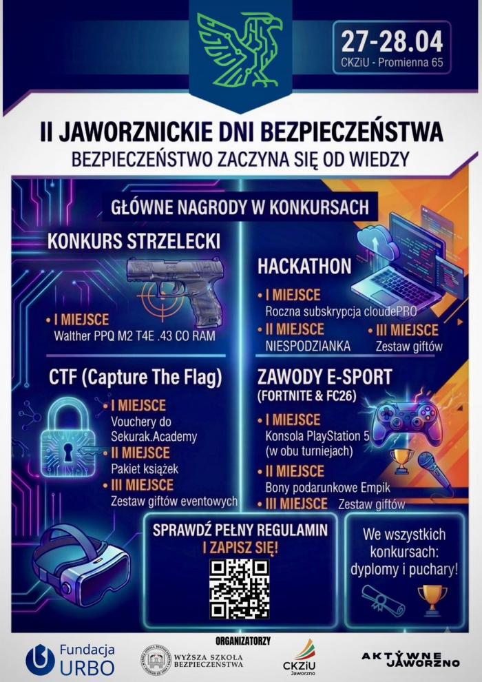 Turnieje gamingowe, hackathon, interesujące prelekcje i warsztaty, symulator dachowania oraz konkursy z nagrodami – to tylko część atrakcji przygotowanych w ramach II Jaworznickich Dni Bezpieczeństwa. W ciągu dwóch dni uczestnicy będą mogli poszerzyć wiedzę o bezpieczeństwie, zarówno w internecie, jak i na co dzień, a przy tym aktywnie spędzić czas i spróbować nowych doświadczeń.