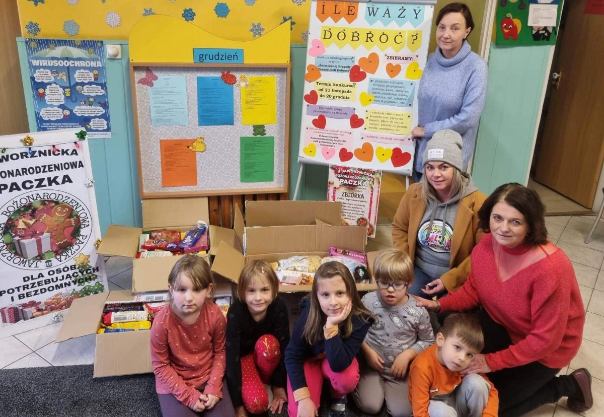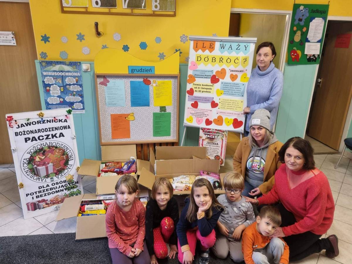 Aby zachęcić rodziców i dzieci do pomocy rodzinom potrzebującym Dyrektor przedszkola Pani Agnieszka Żak wraz z nauczycielami oraz pracownikami zorganizowali międzygrupowy konkurs pod hasłem: „Ile waży dobroć?”. W okresie od 21.11 do 20.12.2022 r. , poszczególne grupy przedszkola rywalizowały o tytuł: