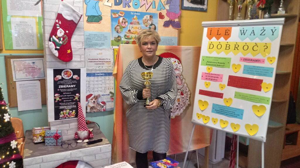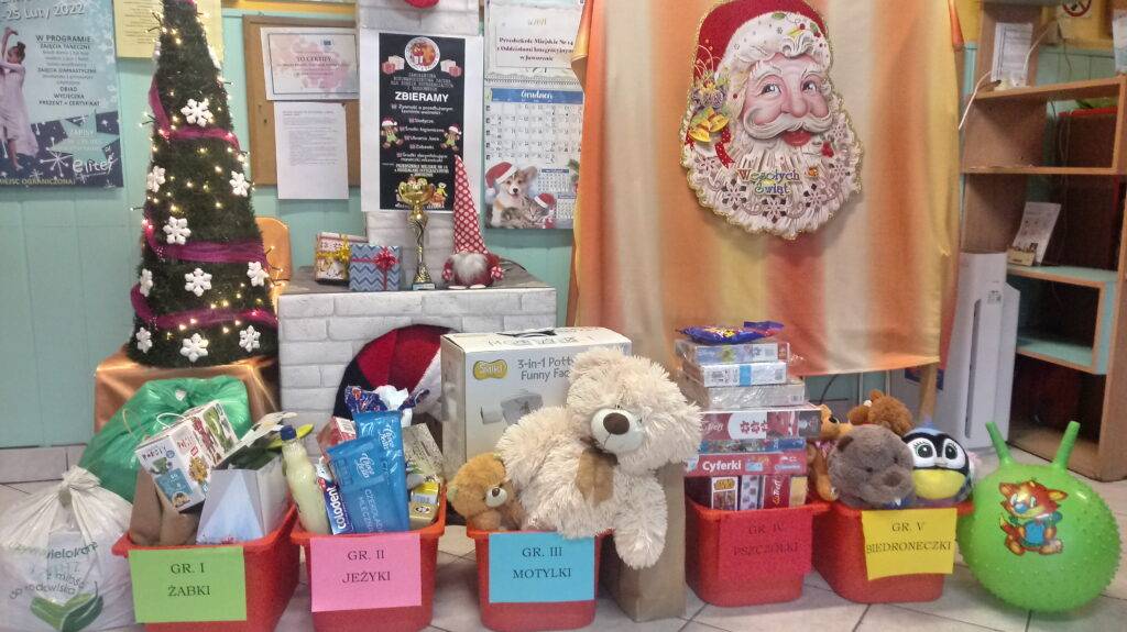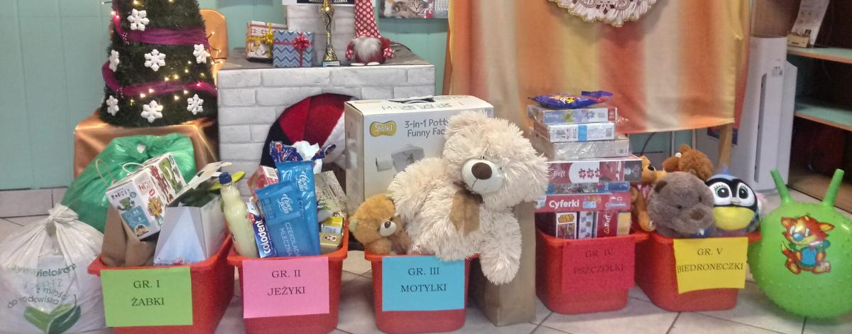 „Świątecznej Brygady Roznosicieli Dobroci” , gromadząc różnorodne artykuły: żywność, środki higieniczne, ubrania, zabawki. Rozstrzygnięcie konkursu nastąpiło 21.12.2021 r., po finalnym zważeniu wszystkich zebranych artykułów. Zebrano 143 kg 300 g pięknych prezentów, najwięcej pochodziło od grupy Jeżyki - 47 kg.
