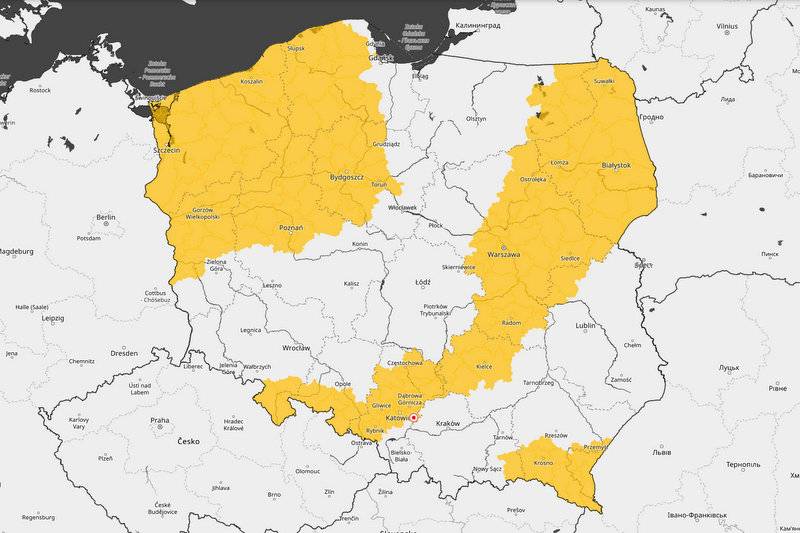 W części Województwa Śląskiego według IMGW mogą występować również  silny deszcz z burzami.