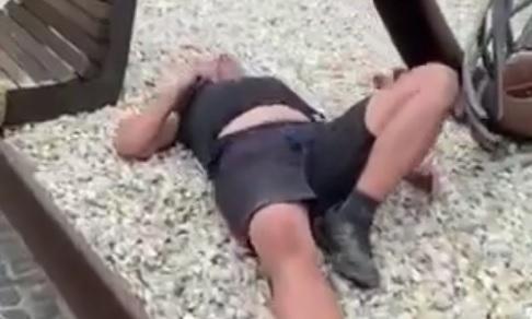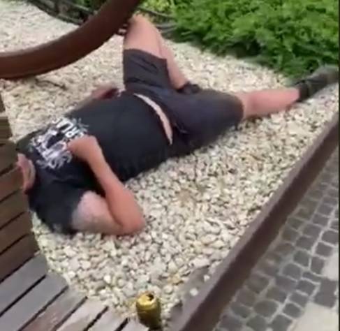 Przezornie imprezowicz na miejsce snu wybrał bezpieczną, płaską kamienną nawierzchnię zamiast potencjalnie stromej i niebezpiecznej ławki - jeszcze by spadł.