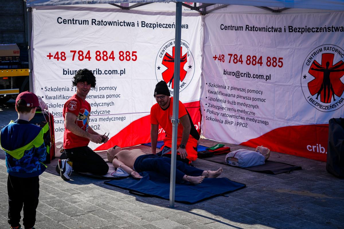Ważnym elementem wydarzenia było również szkolenie z pierwszej pomocy, które odbywało się w godzinach 15:00–17:00. Uczestnicy mogli poznać podstawowe czynności ratujące życie, w tym zasady prowadzenia resuscytacji krążeniowo-oddechowej (BLS), obsługę defibrylatora AED oraz sposób postępowania w przypadku zakrztuszenia.
