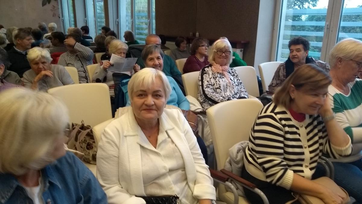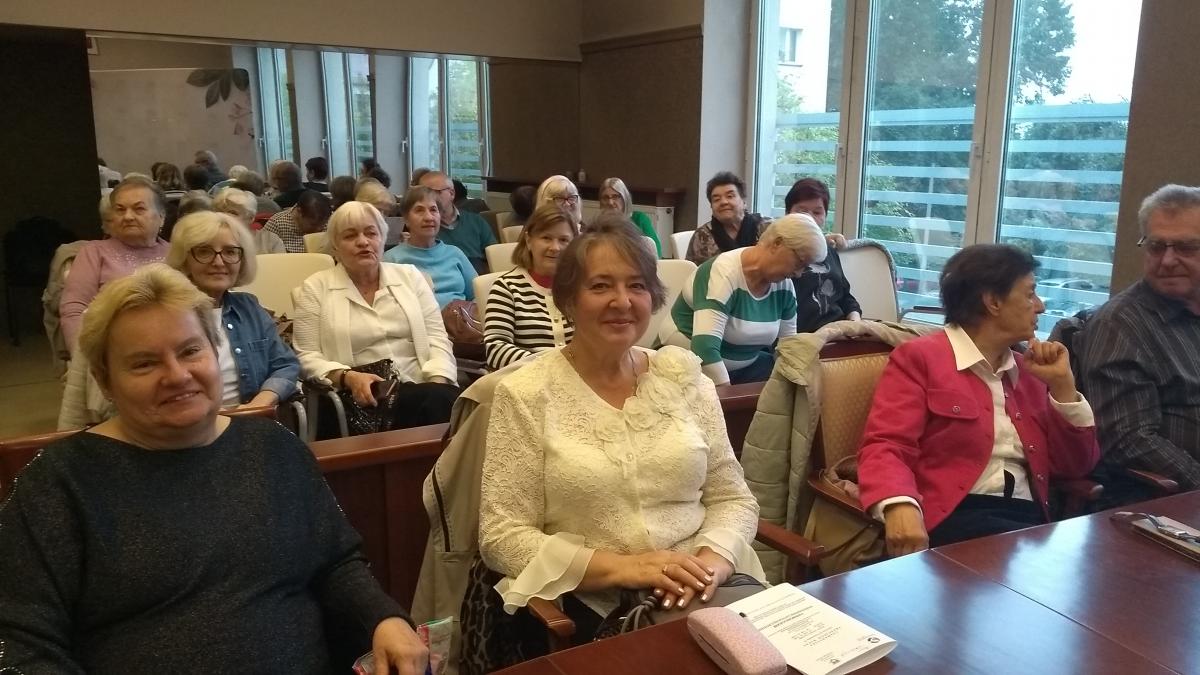Ostatnim punktem naszego spotkania była prezentacja przez p. Janinę Dachowską wykładów i zajęć, na które będą mogli uczęszczać nasi słuchacze w tym roku akademickim, tj. aerobik dla seniora, gimnastyka dla seniora w wodzie, zajęcia taneczne, zajęcia ruchowo-usprawniające, joga, gimnastyka rehabilitacyjna, język angielski, chór, tai chi, ćwiczenia umysłu - gry planszowe, zajęcia z rękodzieła artystycznego, nordic walking i inne. Zakres zajęć jest różnorodny i myślę, że każdy ze słuchaczy znajdzie coś interesującego dla siebie.