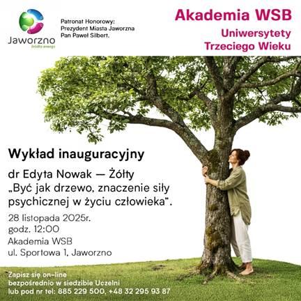 W Jaworznie zainauguruje Uniwersytet Trzeciego Wieku Akademii WSB. Dla seniorów z Jaworzna i okolicy to doskonała okazja do rozwoju, spotkań, a także do zdobywania wiedzy. Władze uczelni zapraszają na wykład inauguracyjny zatytułowany "Być jak drzewo. Znaczenie siły psychicznej w życiu człowieka", który poprowadzi dr Edyta Nowak-Żółty.