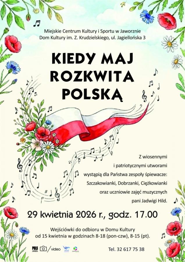 29 kwietnia – godz. 17.00, Koncert wiosenno-patriotyczny „Kiedy maj rozkwita Polską”,