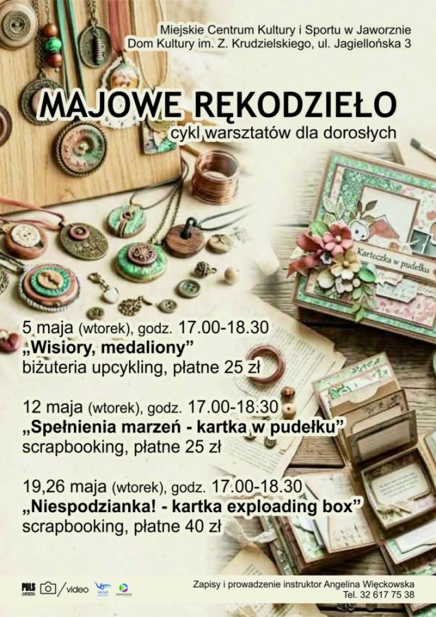 5 maja - 26 maja, w każdy wtorek w godz. 17.00 – godz. 18.30, Majowe rękodzieło dla dorosłych,