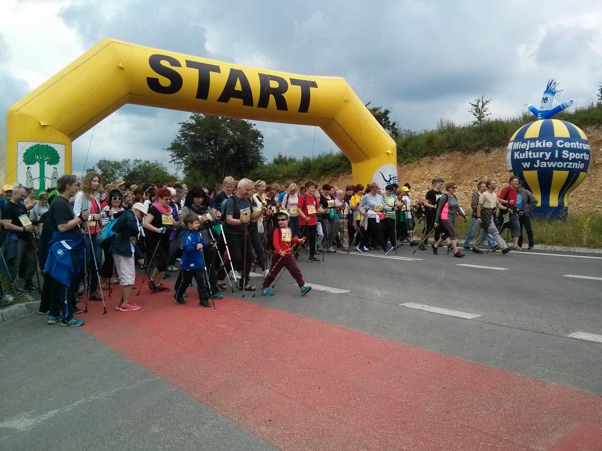 Ponad 500 osób wyruszyło w czwartej edycji rajdu Nordic Walking w Geosferze. Na starcie młodzi i starsi, wszyscy w dobrym nastroju gotowi do ćwiczeń.