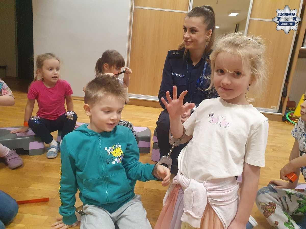 Spotkanie było też okazją do poznania pracy policjanta. Podkomisarz Anna Tyma pokazała również elementy swojego służbowego wyposażenia, a najmłodsi chętnie pytali ją o pracę. Niektórzy przyznali się, że w przyszłości również chcieliby nosić mundur jak ona.