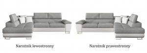 Narożnik prawostronny to model, który szezlong posiada po prawej stronie, natomiast narożnik lewostronny analogicznie – po lewej stronie.