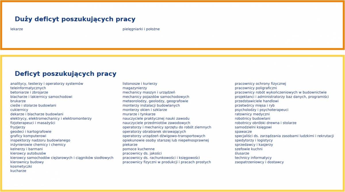 Zawody deficytowe to te, w których w najbliższym roku nie powinno być trudności ze znalezieniem pracy – liczba wolnych miejsc jest większa niż liczba osób zainteresowanych podjęciem.
