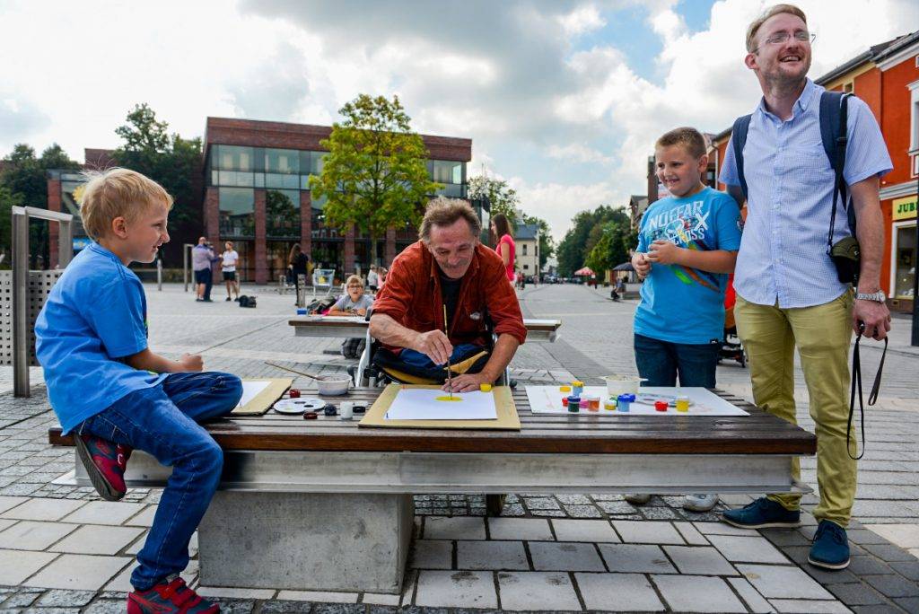 Trzeba przyznać, że warunki pleneru wyśmienite – światło dobre a artyści w pełnej gotowości. Malowano więc z zapałem kościół, zegar słoneczny, fontannę i kamieniczki. Choć gdyby np. wyprawić się do dawnego kasyna albo na tereny po dawnej cementowni to by dopiero był plener. A gdzie udali by się artyści, co im w mieście szczególnie się podoba?