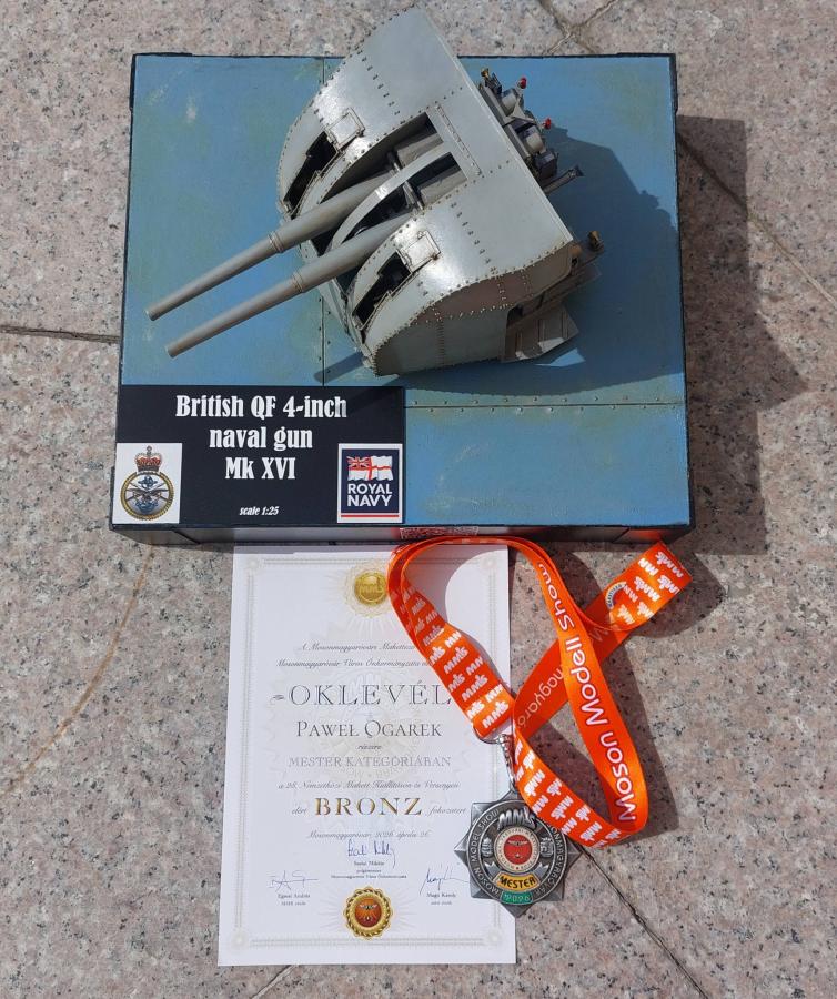 Paweł Ogarek: Brąz (Master) za model Brytyjskiej ,,czterocalowej" armaty morskiej w skali 1:25 w kategorii modeli kartonowych. (iw)