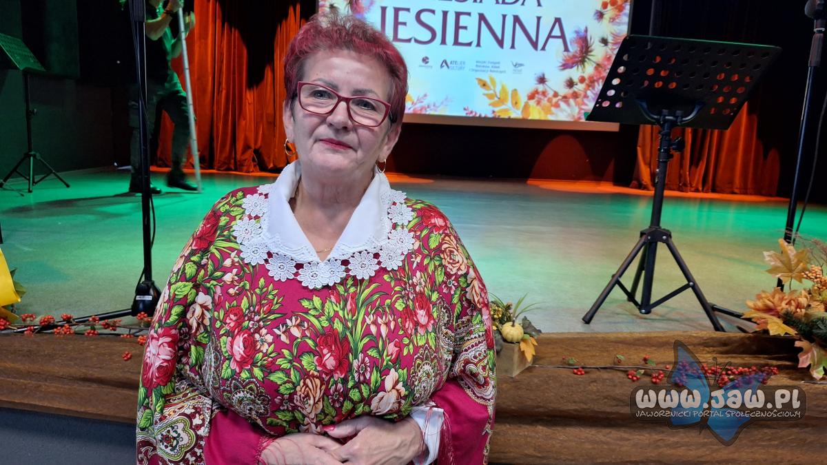 Wszyscy, i goście, i panie i panowie z zespołów śpiewaczych bawili się doskonale. Śpiewom wspólnym końca nie było. Bardzo to było udane wydarzenie. Przy okazji zaskoczyła nas Danuta Dubiel prezes Miejskiego Związku Rolników, Kółek i Organizacji Rolniczych. Pani Danuta lubi jesień nie tylko za kasztany.