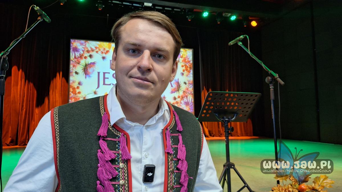 Z uwagi na fakt, że mamy Jesienną Biesiadę, więc kultywujemy te klimaty ludowe – mówi Michał Kirker – mam brzuślok, który zamówiłem w Muzeum Miasta Jaworzna. Został on stworzony przez jaworznickie hafciarki, pod okiem pani Iwony Brandys. To brzuślok, który zamówiłem na swój ślub. Co prawda małżonka nie pozwoliła mi iść w nim do ślubu, ale już na poprawinach go miałem. Jest to autentyczny ubiór krakowiaków zachodnich, który kiedyś był przekazywany z pokolenia na pokolenie.