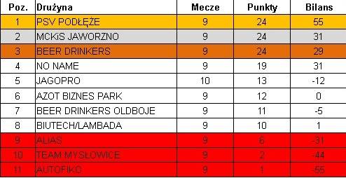 Biutech - Alias 8:2 (3:1) 6. min, 1:0 Rokowski Mariusz 7. min, 1:1 Siata Wojciech 15. min, 2:1 Rokowski Mariusz 16. min, 3:1 Rokowski Mariusz 27. min, 4:1 Smreczak Tomasz 34. min, 4:2 Gucwa Grzegorz 38. min, 5:2 Kowalski Krzysztof 39. min, 6:2 Rokowski Marcin 39. min, 7:2 Gaj Mariusz 40. min, 8:2 Gaj Mariusz