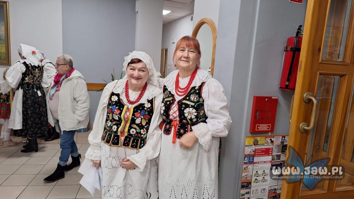 Zespół Górzanie przywdział oryginalne stroje śląskie, „ale pszczyńskie, trochę różnorodne”. - Jedna pani założyła czepiec - objaśniał Paweł Libera. – To ubiór na ekstra święta, np. wesela, natomiast strój bez czepca z chustką to ubiór do kościoła. Jest też ubiór pań „po chałupie” i strój dziewczęcy z wiankiem.