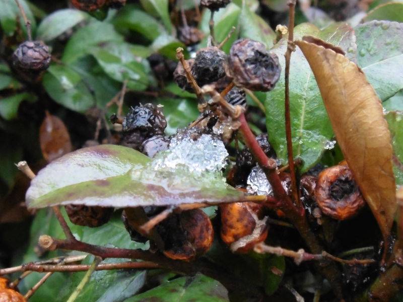 Na krzewie ognika szkarłatnego - Pyracantha coccinea leżał topniejący śnieg.