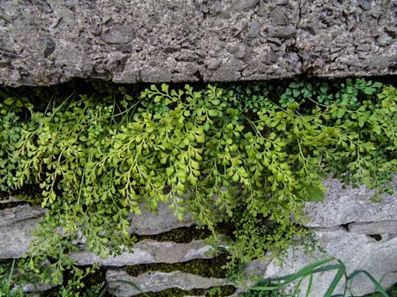 Tutaj na dobre osiedliła się zanokcica murowa - Asplenium ruta-muraria.