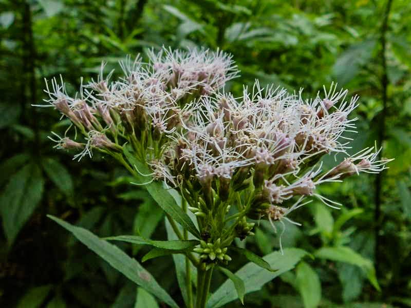 Idziemy dalej na południe. Znajdujemy się w środku lasu. Na początku mijamy sadźca konopiastego - Eupatorium cannabinum.