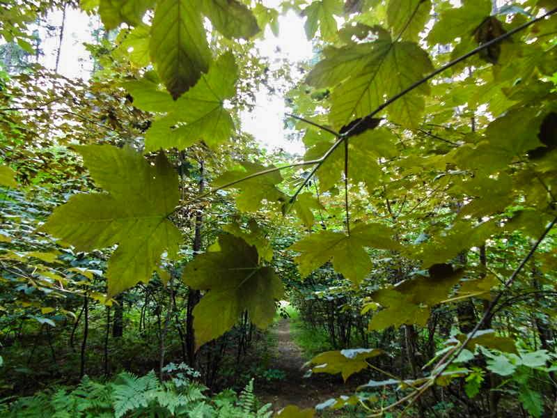 Przy południowej krawędzi lasu odkrywamy niesamowity skutek inwazji klonu jaworu o czerwonych liściach - Acer pseudoplatanus.