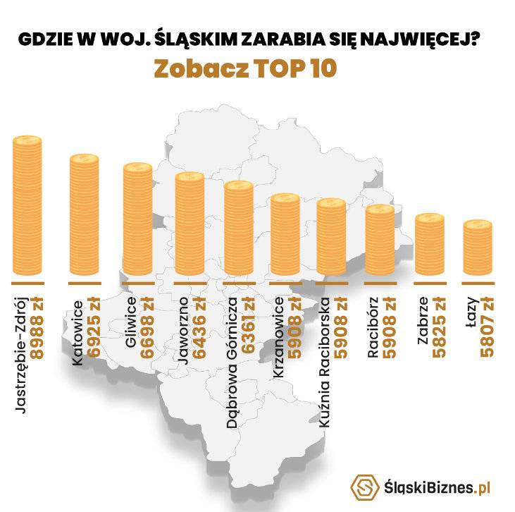 Główny Urząd Statystyczny opublikował ranking miast w województwie śląskim, które oferują najwyższe wynagrodzenie. Dane pochodzą z powiatów z 2021 roku.