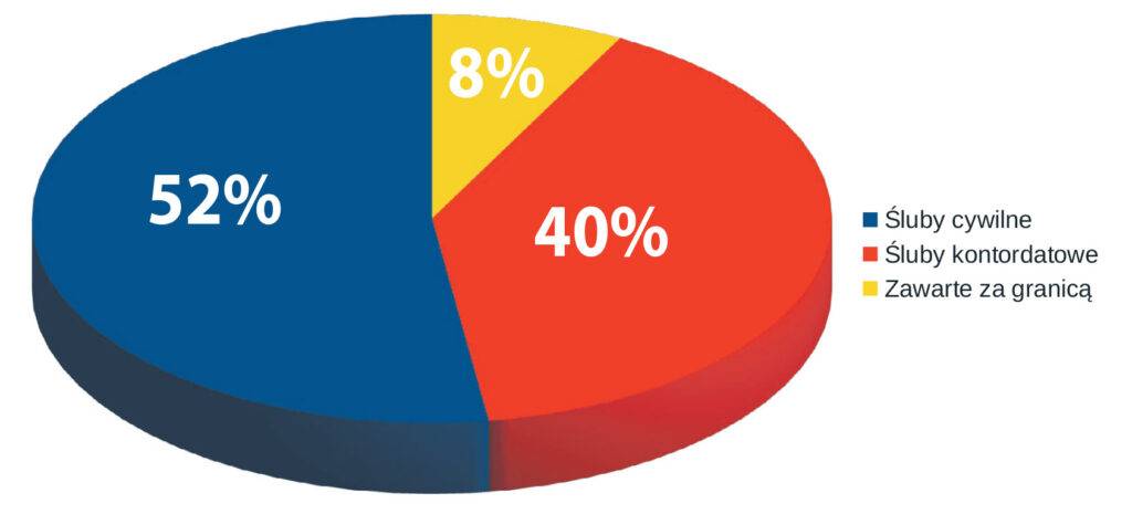 rokiem o 4 śluby więcej. Zarejestrowano 161 ślubów cywilnych i 123 konkordatowe, co stanowi 284 aktów małżeńskich oraz 24 małżeństwa zawarte za granicą. Łącznie 308 aktów małżeńskich.