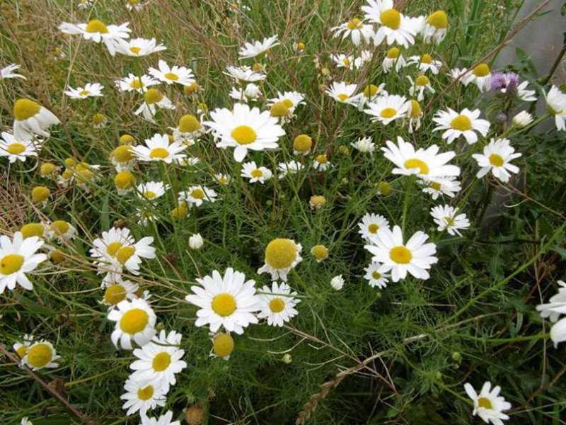 Przy ulicy Rzemieślniczej także znajduje się dziki spłachetek. Tutaj bielała maruna bezwonna - Matricaria perforata.